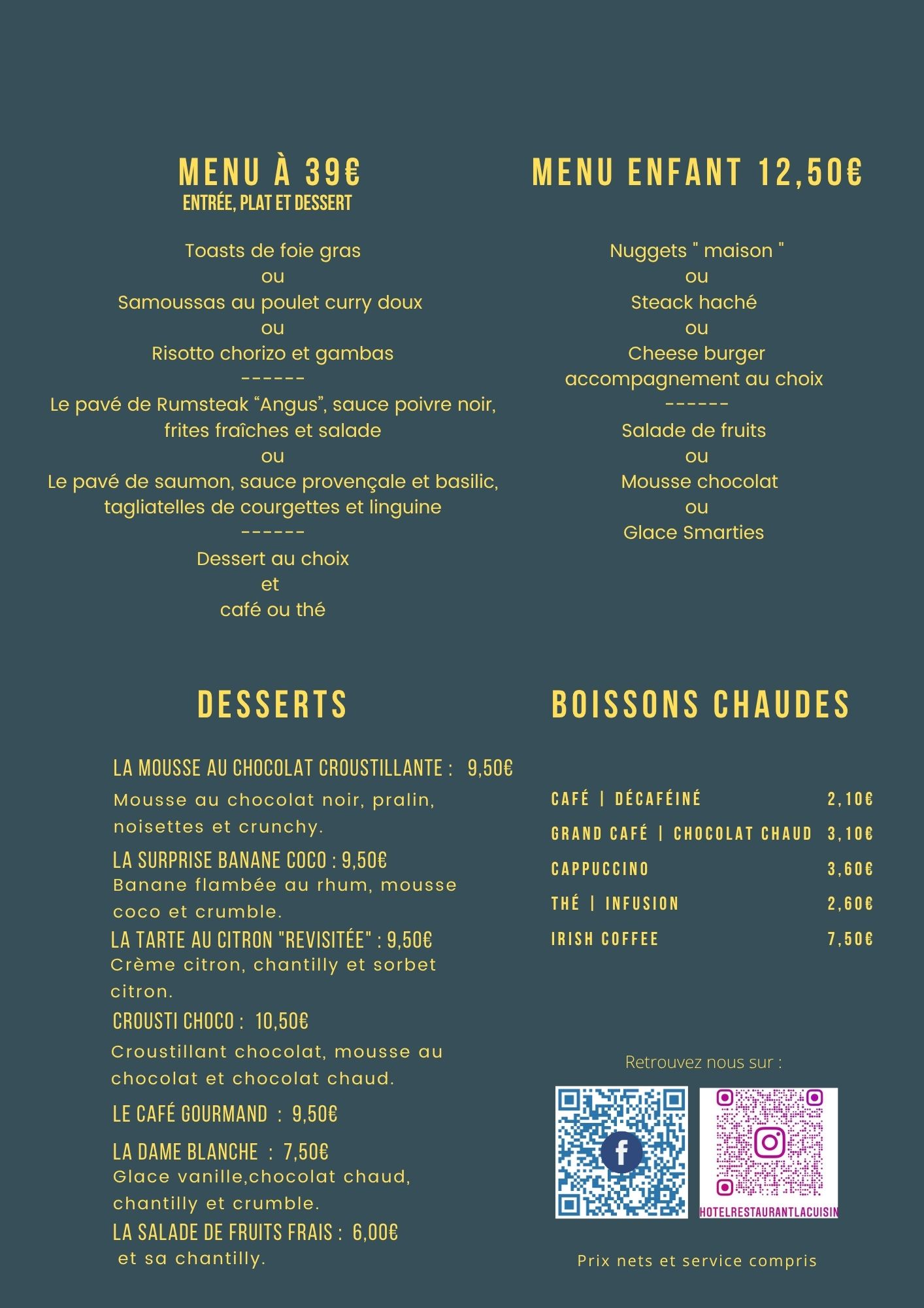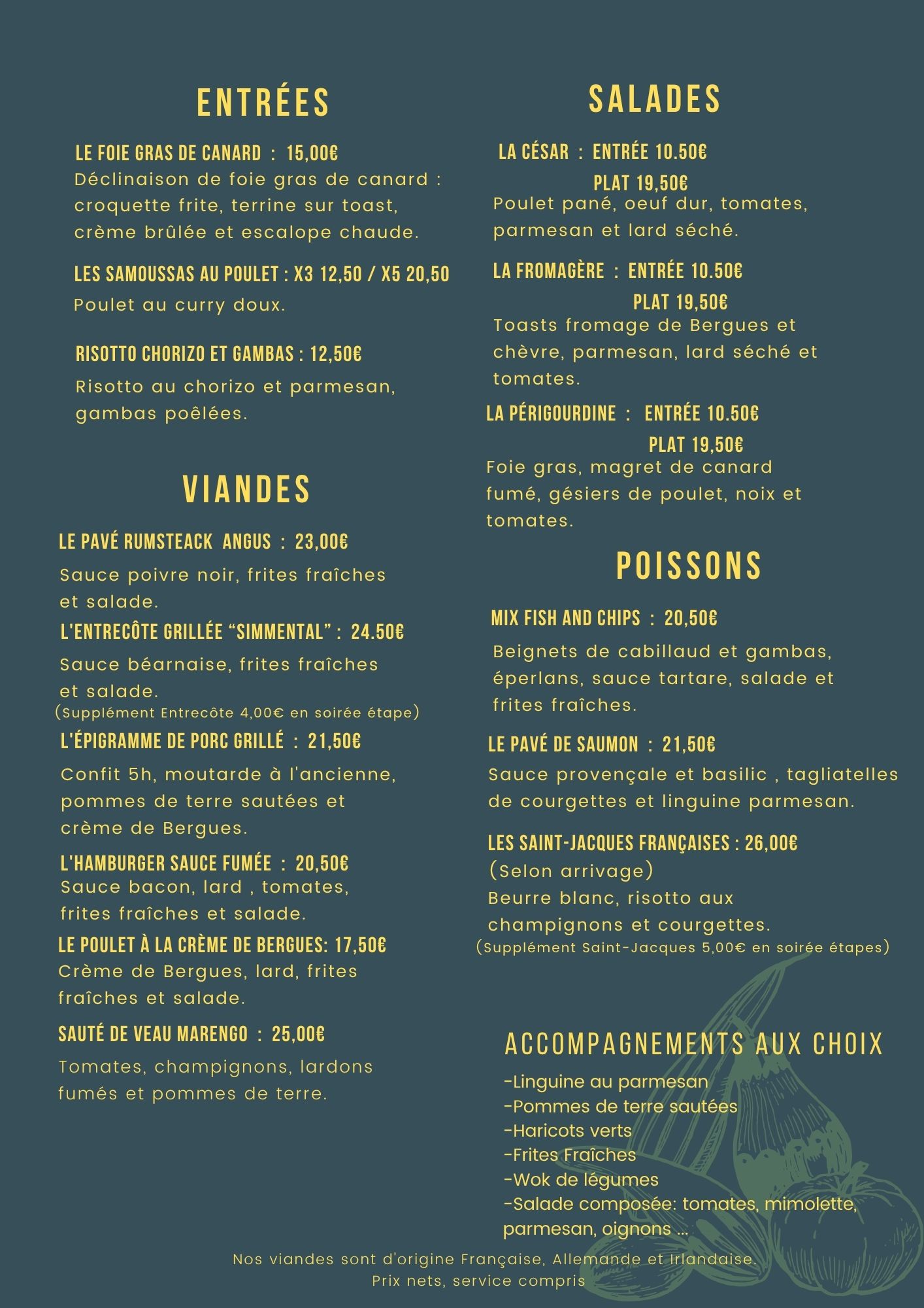Venez découvrir notre menu qui évolue au fil des saisons, offrant une variété de plats créatifs et inspirés.